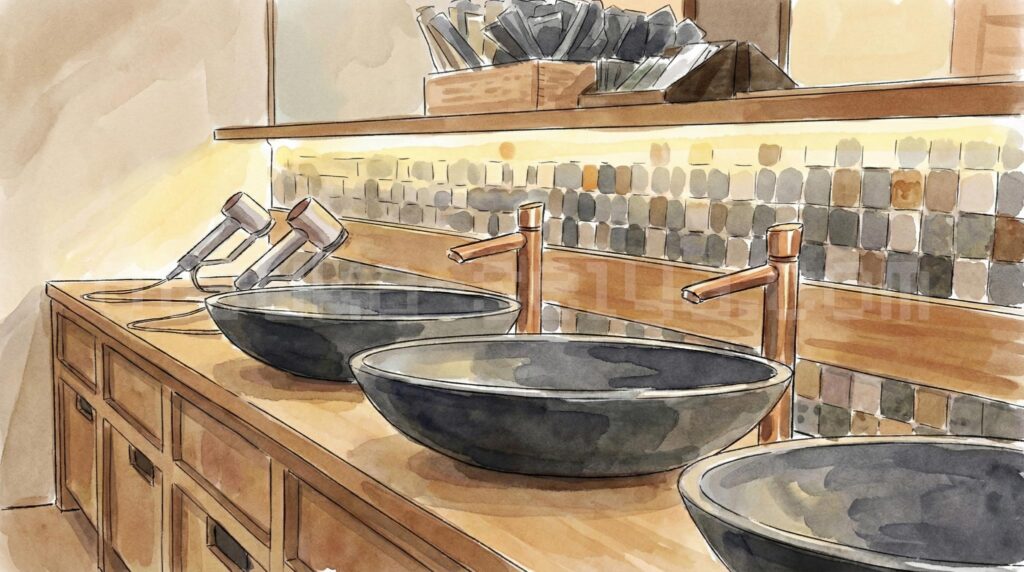 - シャワーが全て固定式で、使い勝手が悪いと感じました。カランの数は6席あるので混雑はしませんが、シャワーヘッドが動かせないのは不便です。