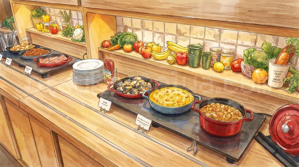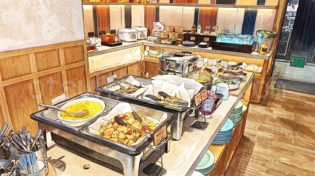 日帰りスパ利用は一般約5,500円で都内でもやや高め。ただしNOC会員登録(無料)で約4,400円、平日早朝(7:00〜10:00)なら約2,200円まで下がるので、コスパを重視するなら会員登録と時間帯選びがポイントです。 - 週末朝食は混雑しやすい