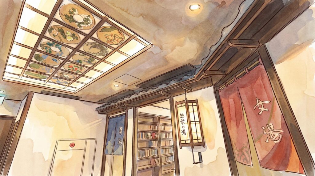 男湯には「昇天の滝*と名付けられた打たせ水が設置されています。水風呂から上がった後、頭をさらに冷却したいときに「カランまで歩かなきゃいけない」という小さなストレスを感じたことはありませんか?この昇天の滝があると、水風呂の横でそのまま頭上から水を浴びられます。動線が一段階レベルアップしているわけです。