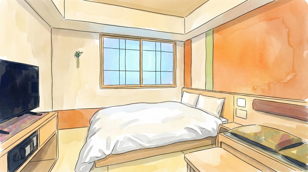 客室はダブル(16.5〜18.7㎡)、ツイン(22.4㎡)、スーペリアツイン(25.8㎡)をはじめ全5タイプ。一人旅ならダブルで十分、ゆったり使いたいならスーペリアツインという選択肢になりますね。