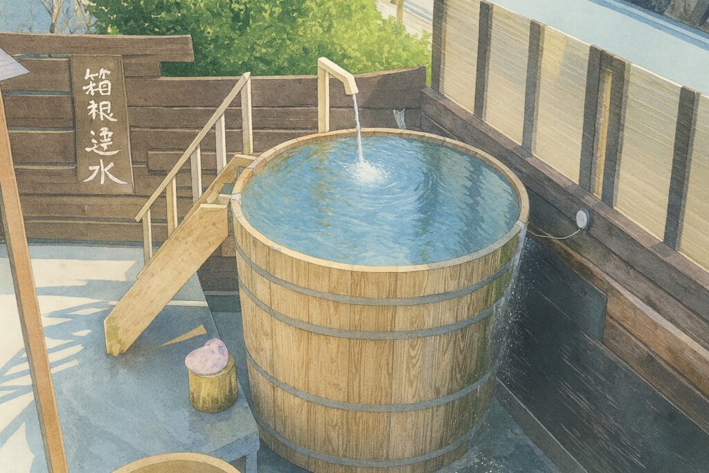 - 深さ150cm「箱根連山水風呂」:頭まで潜る幸せ