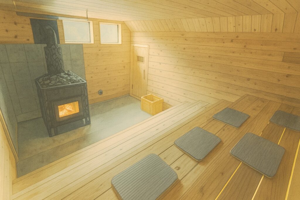 - 3つのサウナ室を制覇:薪と蒸気の楽園