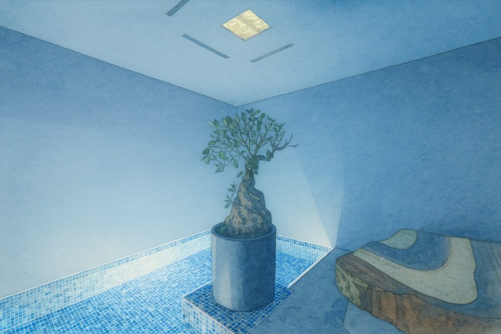 面白いのが、この部屋にはテレビも温度計も12分計もないこと。つまり、時間や数字に縛られず、自分の身体の声に耳を傾けることが求められるんです。この「引き算の美学」が、逆に深い瞑想状態を生み出してくれるんですよね。