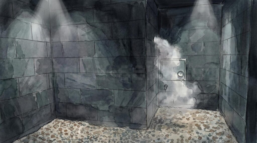 ミストが全身に絡みつくような感覚で、肌の奥からじわじわと温まっていくんです。嗅覚には温泉地のほのかなミネラルの香り。チクチクする熱さではなく、全身を丸ごと優しく包んでくれるような温かさ——これは「ととのう」サウナとはまた別の体験でした。