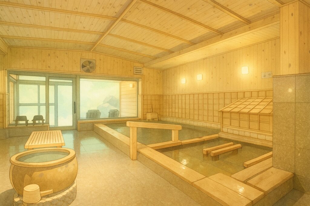 つまり、サウナ室全体が「温泉の蒸気」に包まれている状態。口コミでは「むっしむし感がたまらない」「息がしやすいのに汗がしっかり出る」という評価が多数ありました。収容人数は男女とも8名です。