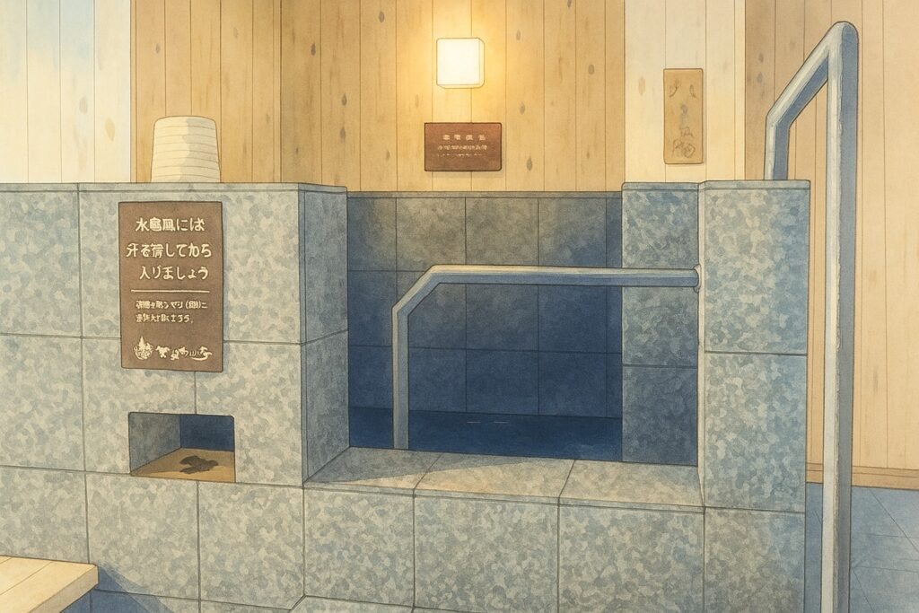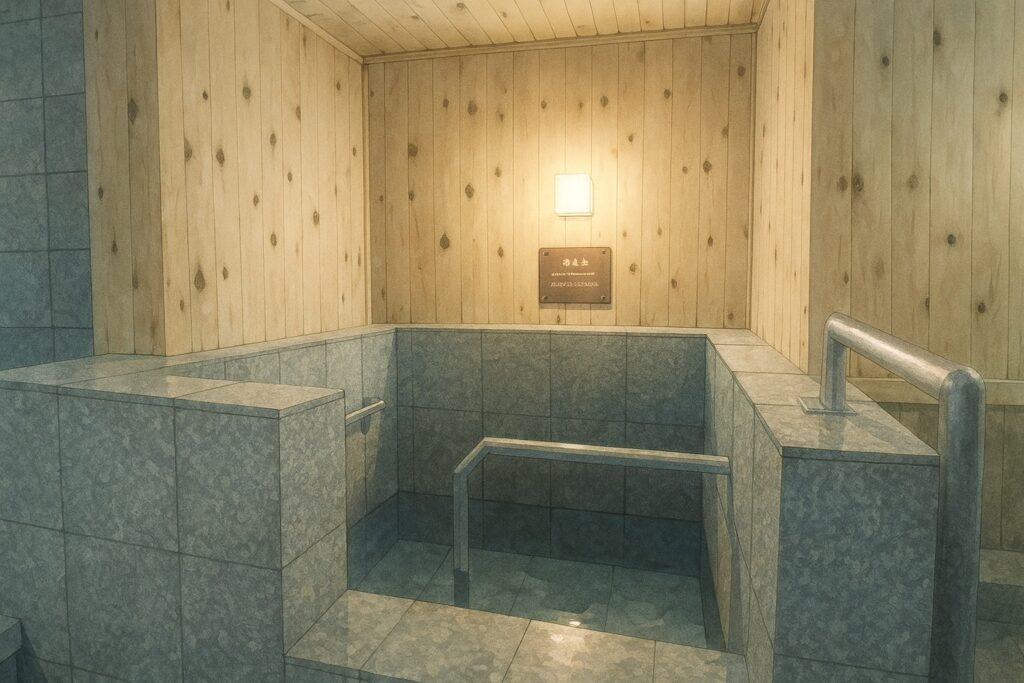 - 深さ110cmの水風呂 – 源泉を冷やした温泉水風呂で全身浸かれる贅沢