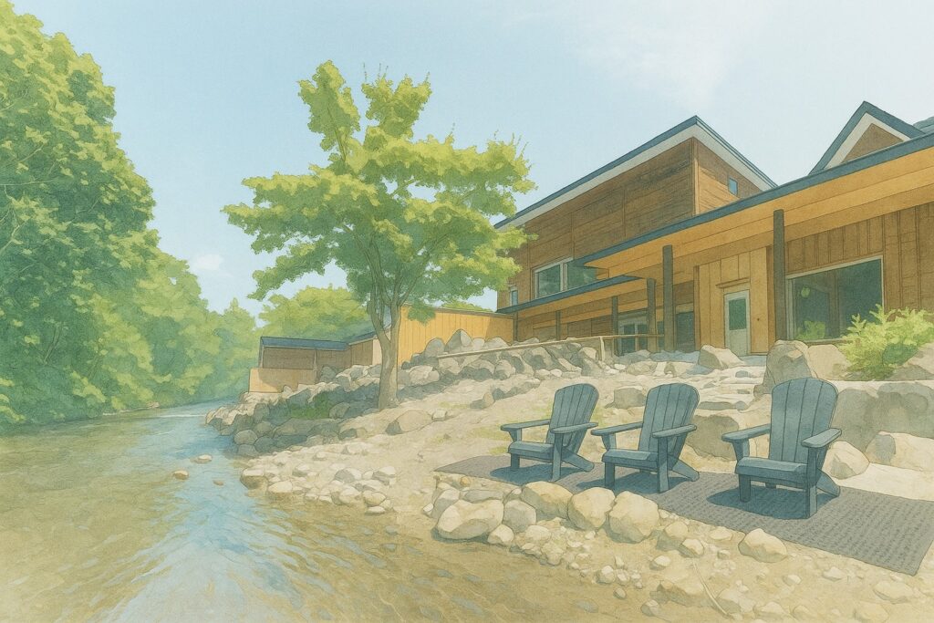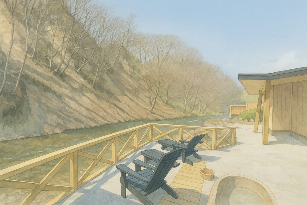 - 渓流沿いの外気浴 – 川のせせらぎと野鳥のさえずりに包まれる